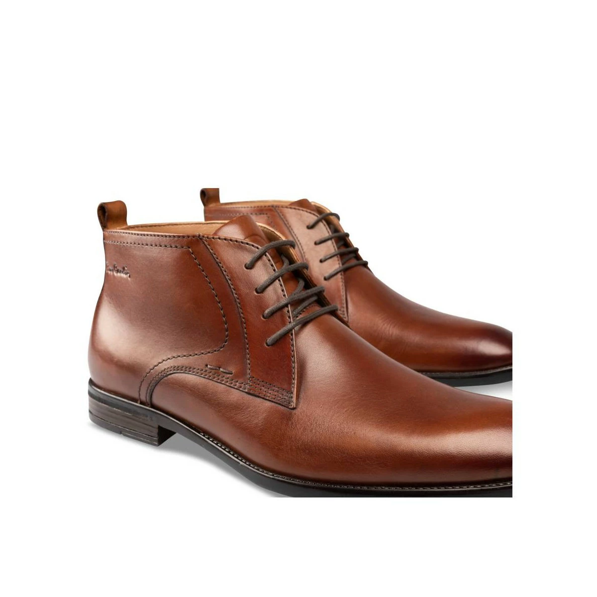 Pierre Cardin, la célèbre marque de haute couture, nous propose cette élégante bottine derby marron pour homme. Composée en cuir véritable, elle est magnifiée par des surpiqûres contrastantes soignées. La bottine se monte sur un petit talon pour un meilleur confort.